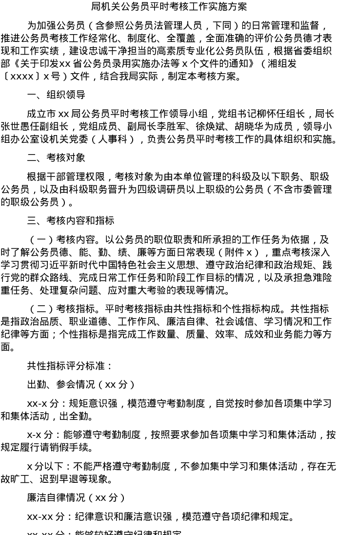 20220221局机关公务员平时考核工作实施方案