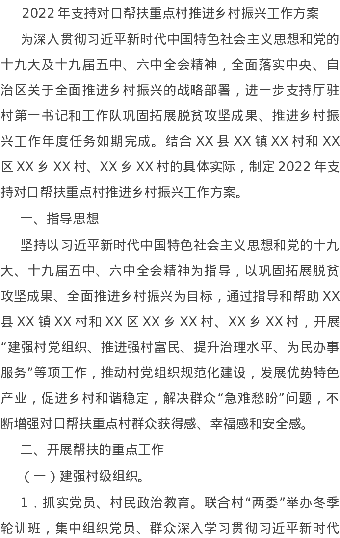 20220222-2022年支持对口帮扶重点村推进乡村振兴工作方案