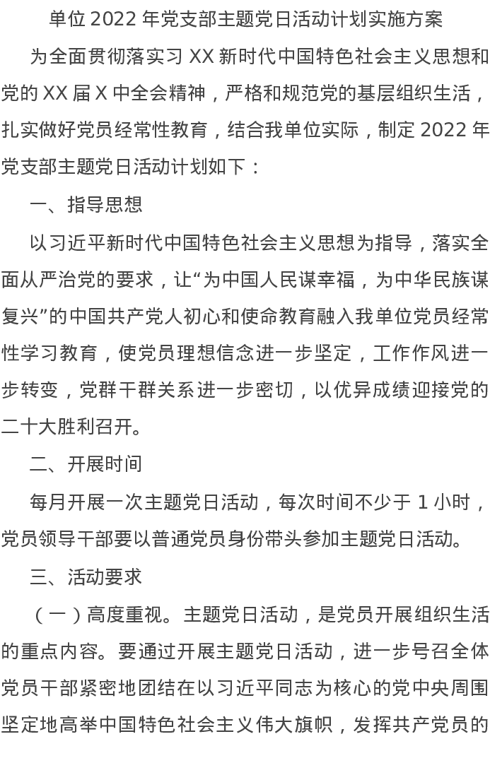 20220222单位2022年党支部主题党日活动计划实施方案