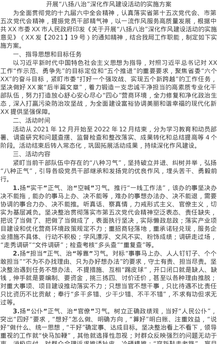 20220224开展“八扬八治”深化作风建设活动的实施方案