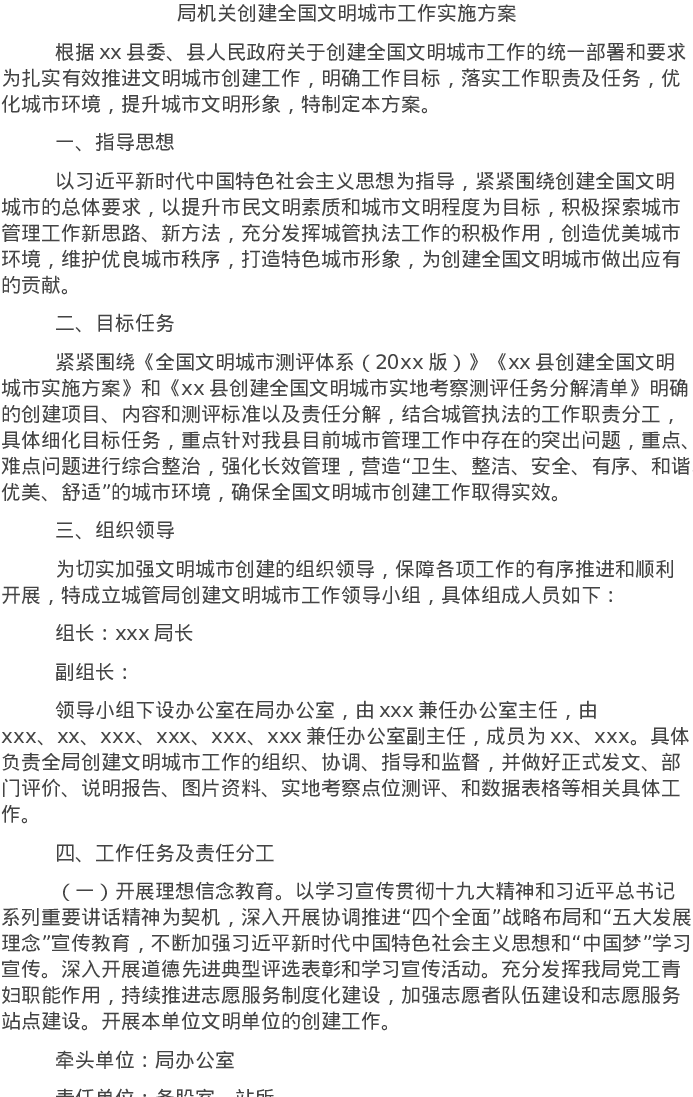 20220226局机关创建全国文明城市工作实施方案