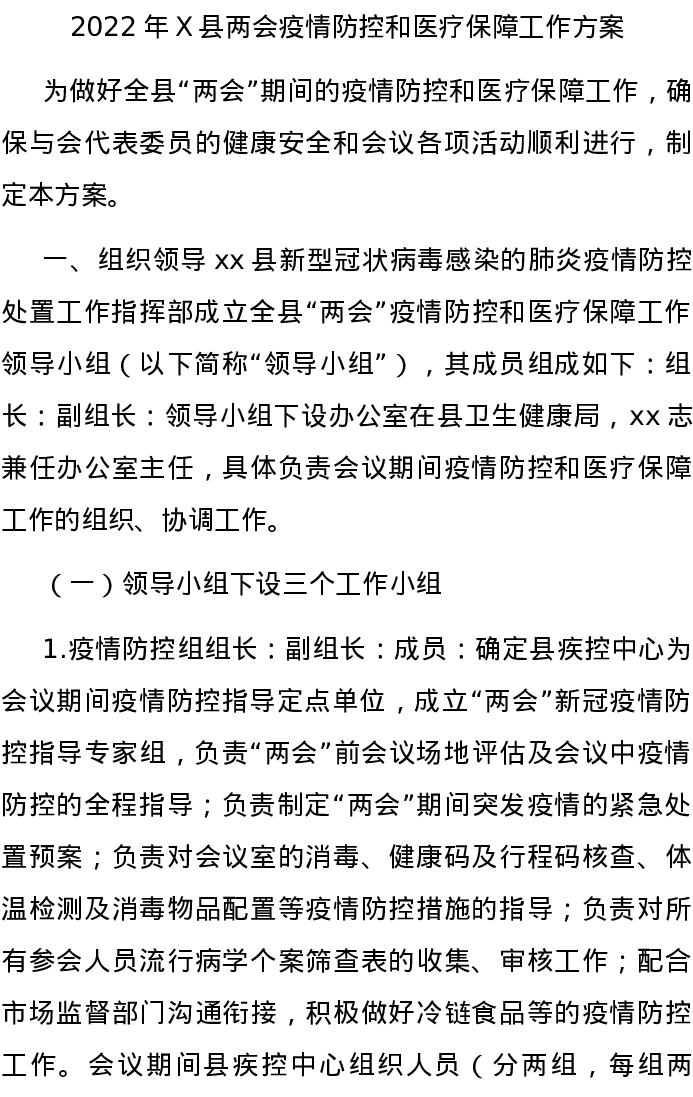 20220303-2022年X县两会疫情防控和医疗保障工作方案