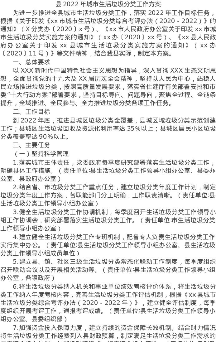 20220312县2022年城市生活垃圾分类工作方案