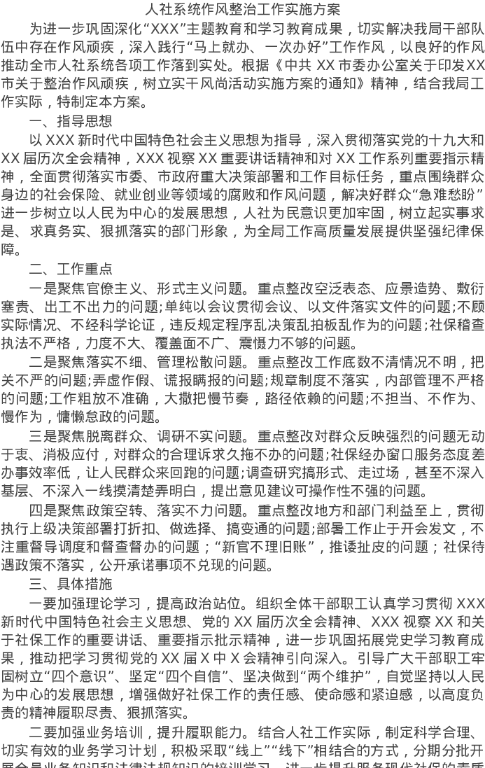 20220319人社系统作风整治工作实施方案