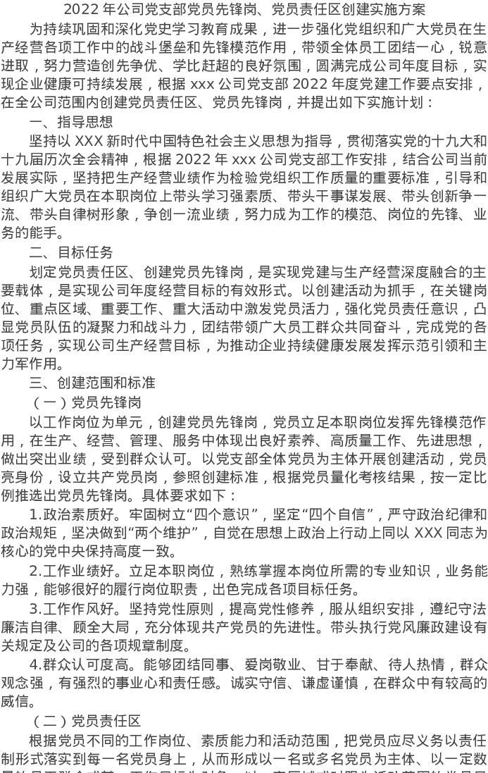 20220320-2022年公司党支部党员先锋岗、党员责任区创建实施方案