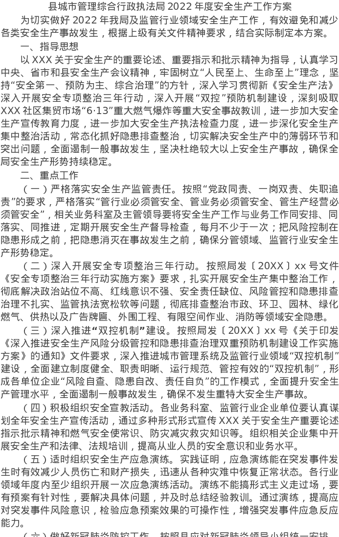 20220320县城市管理综合行政执法局2022年度安全生产工作方案