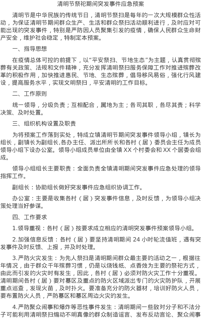 20220324清明节祭祀期间突发事件应急预案