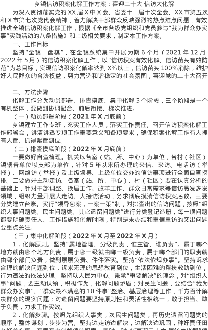 20220325乡镇信访积案化解工作方案:喜迎二十大 信访大化解