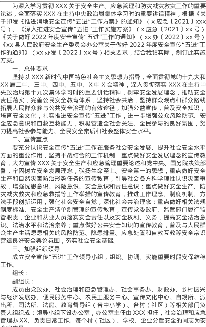 20220328乡镇2022年安全宣传“五进”工作实施方案