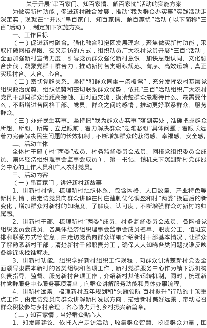 20220331关于开展“串百家门、知百家情、解百家忧”活动的实施方案