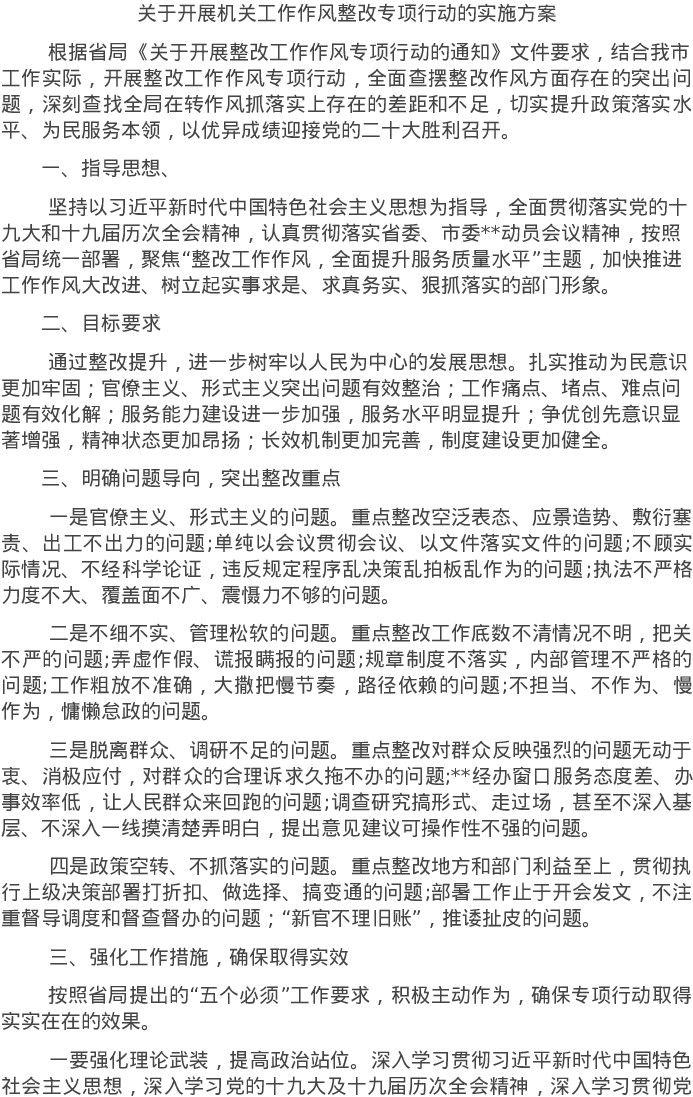 20220403关于开展机关工作作风整改专项行动的实施方案