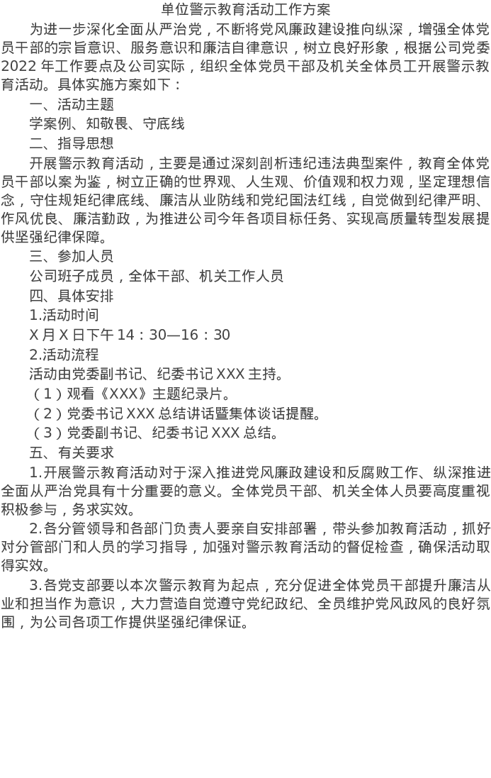 20220403单位警示教育活动工作方案