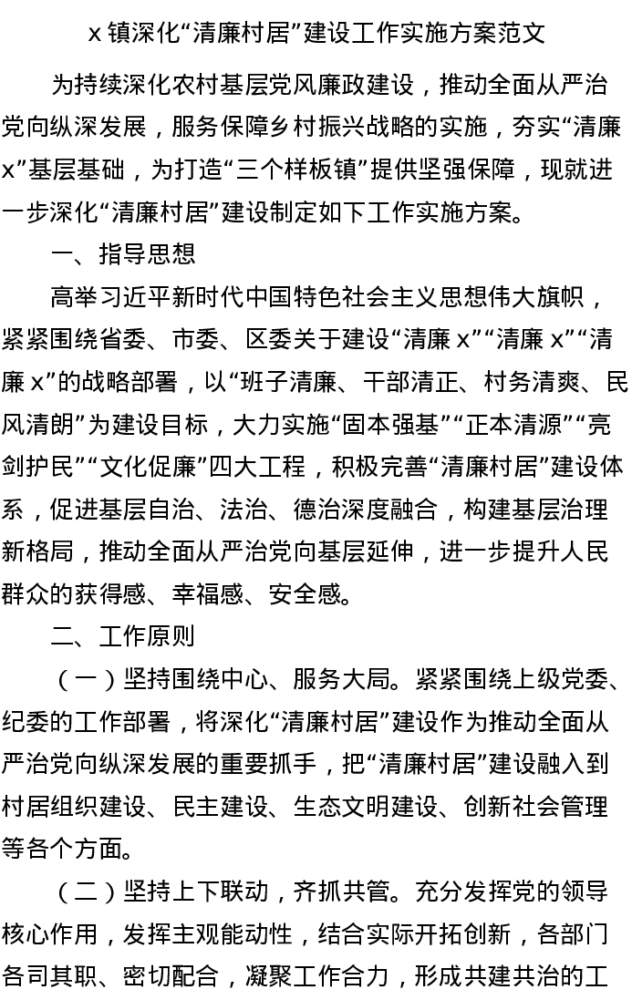 20220413清廉村居乡镇深化清廉村居建设工作实施方案