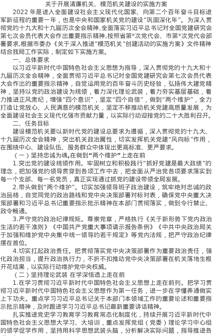 20220423关于开展清廉机关、模范机关建设的实施方案