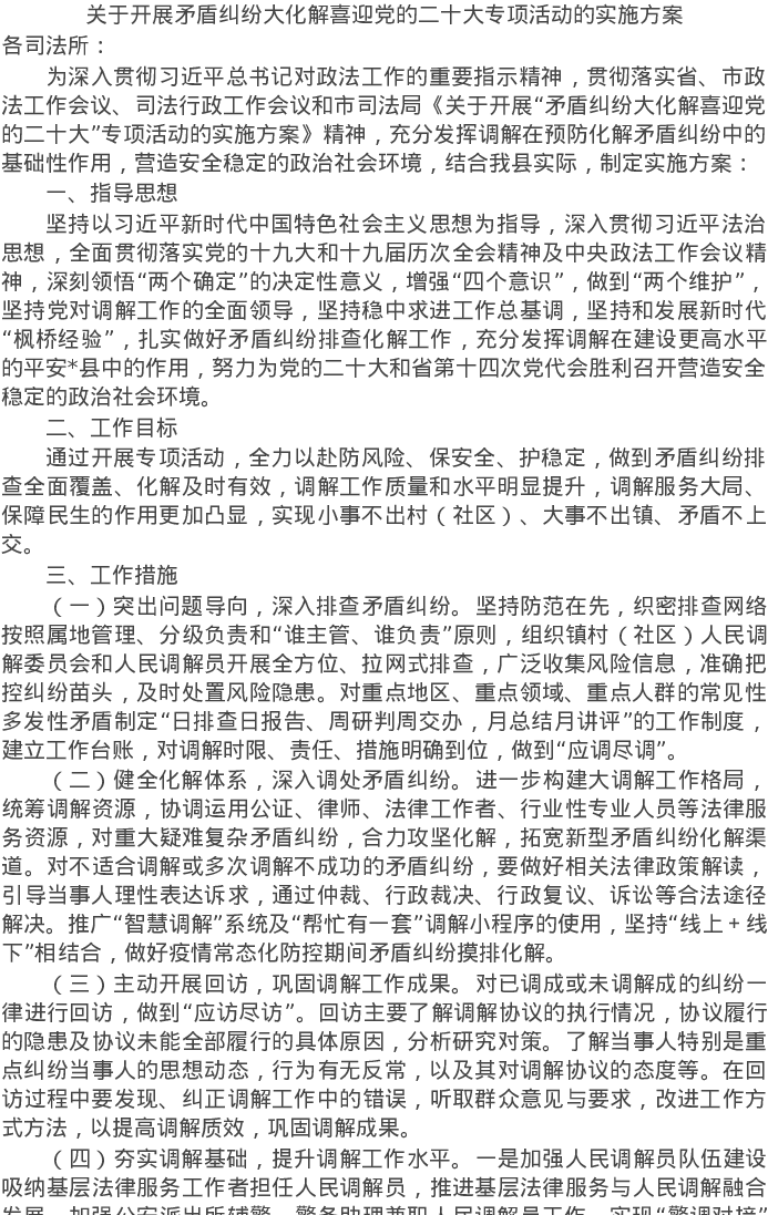 20220424关于开展矛盾纠纷大化解喜迎党的二十大专项活动的实施方案