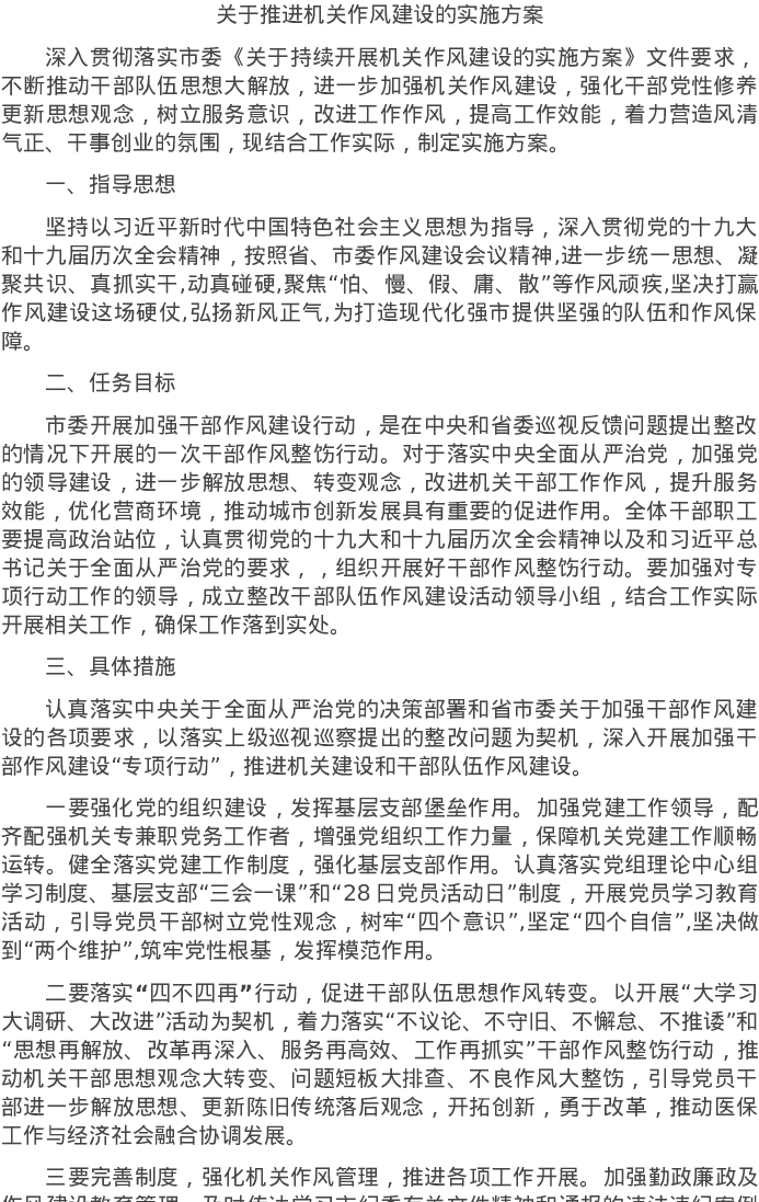 20220424关于推进机关作风建设的实施方案