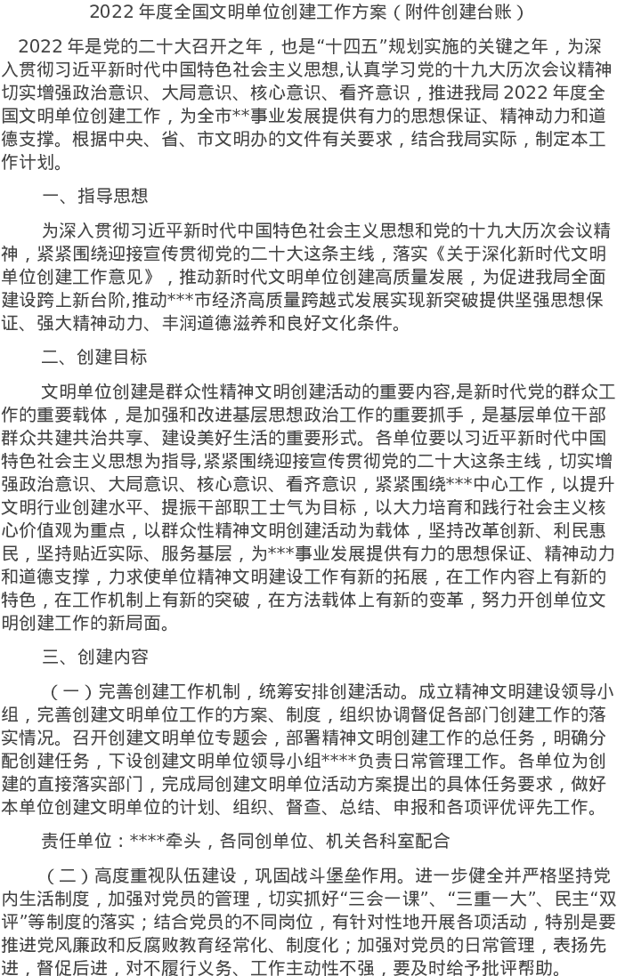20220501-2022年度全国文明单位创建工作方案(附件创建台账)