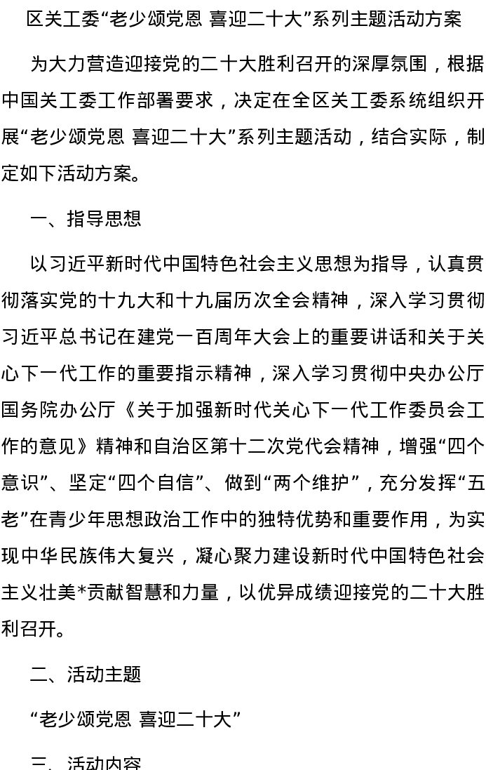 20220505区关工委“老少颂党恩 喜迎二十大”系列主题活动方案