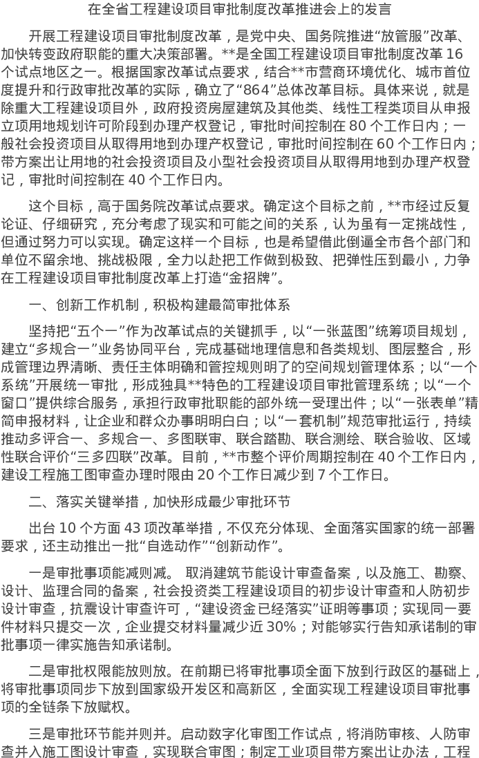 20220511在全省工程建设项目审批制度改革推进会上的发言