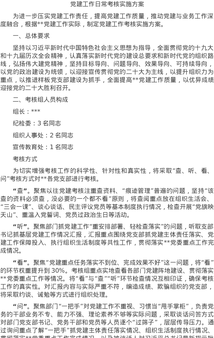 20220524党建工作日常考核实施方案