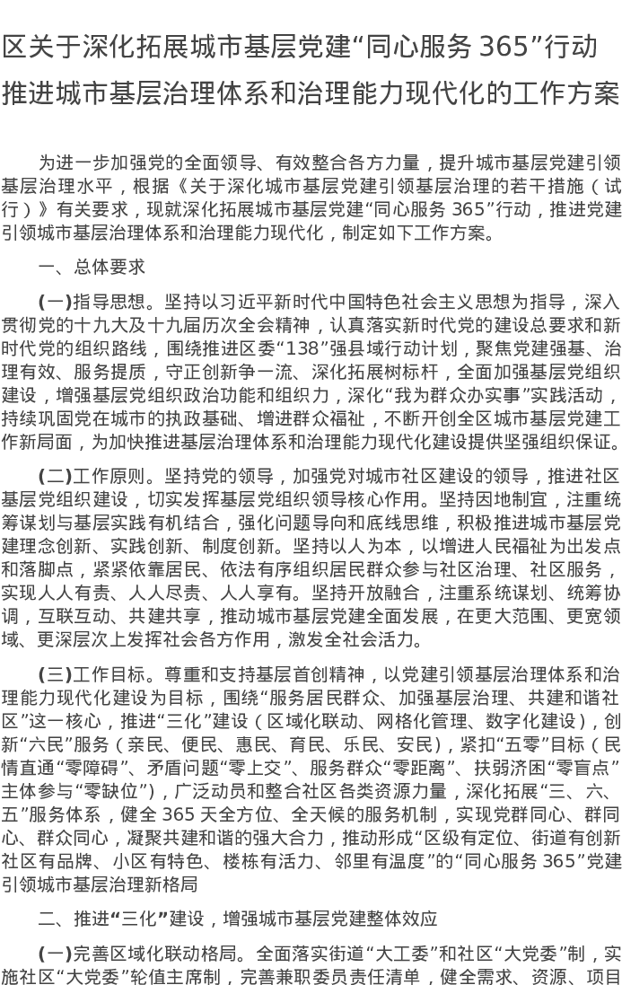 20220525区关于深化拓展城市基层党建“同心服务365”行动推进城市基层治理体系和治理能力现代化的工作方案