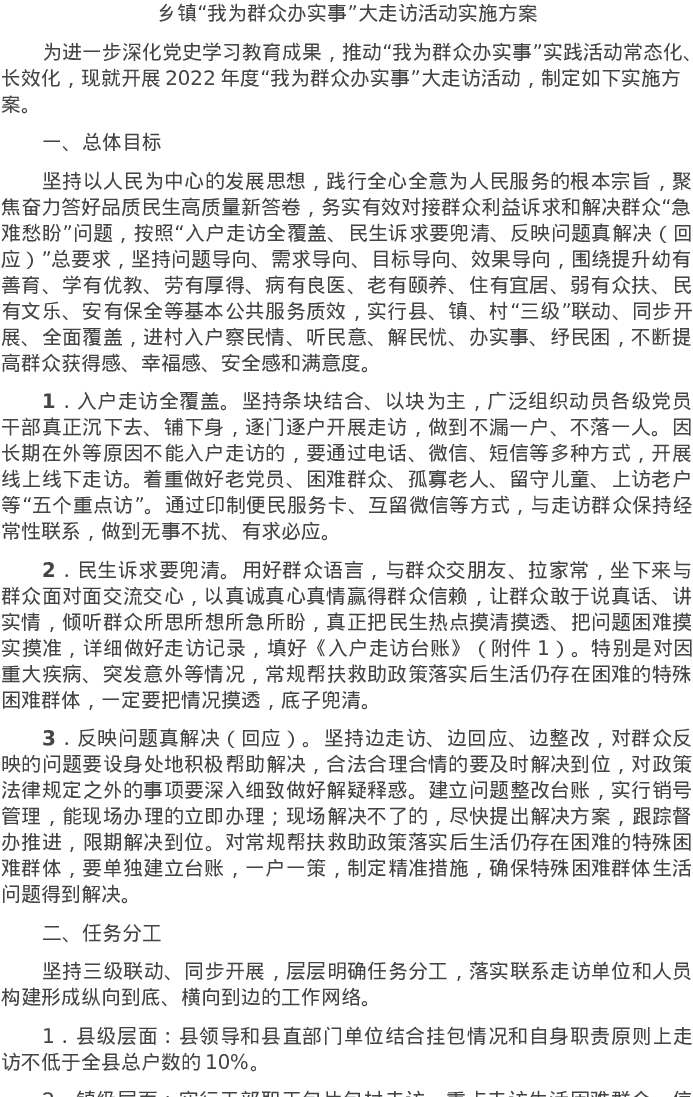20220526乡镇“我为群众办实事”大走访活动实施方案