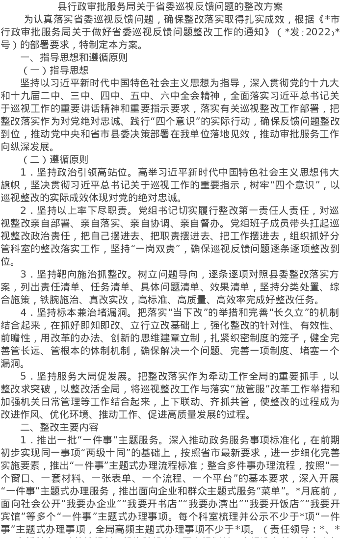 20220719县行政审批服务局关于省委巡视反馈问题的整改方案