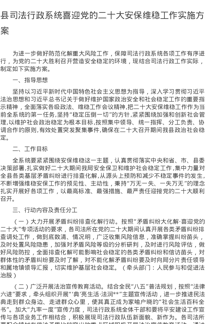 20220728县司法行政系统喜迎党的二十大安保维稳工作实施方案