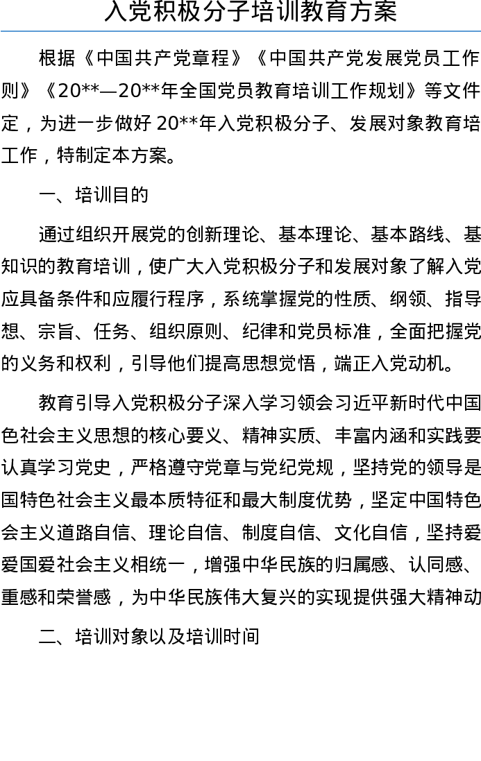 20220805入党积极分子培训教育方案