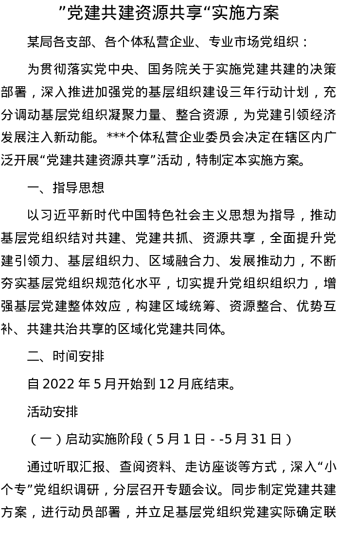 20220811”党建共建 资源共享“实施方案