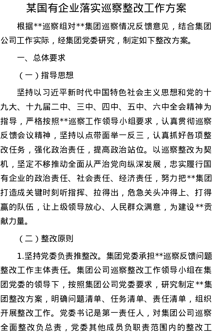20220815某国有企业落实巡察整改工作方案