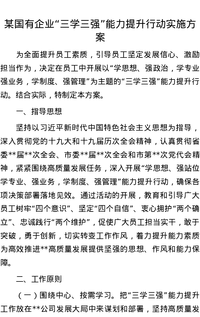20220818某国有企业“三学三强”能力提升行动实施方案