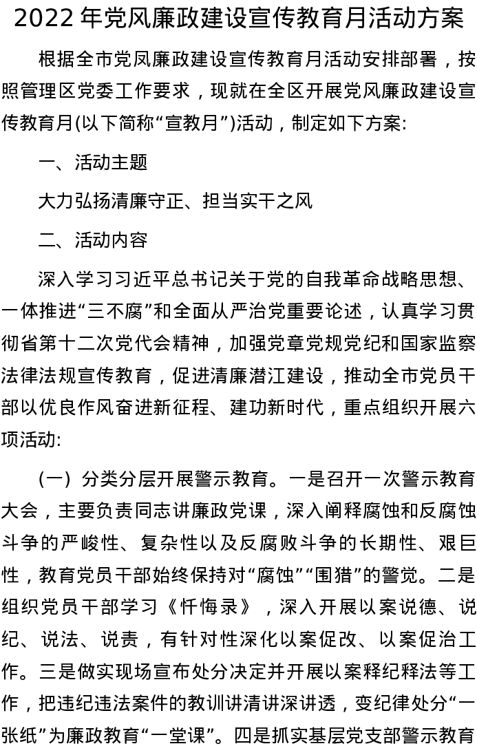 20220825-2022年党风廉政建设宣传教育月活动方案