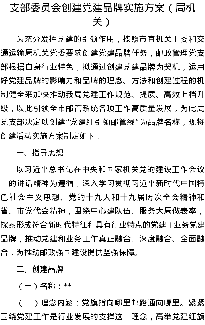 20220825支部委员会创建党建品牌实施方案(局机关)