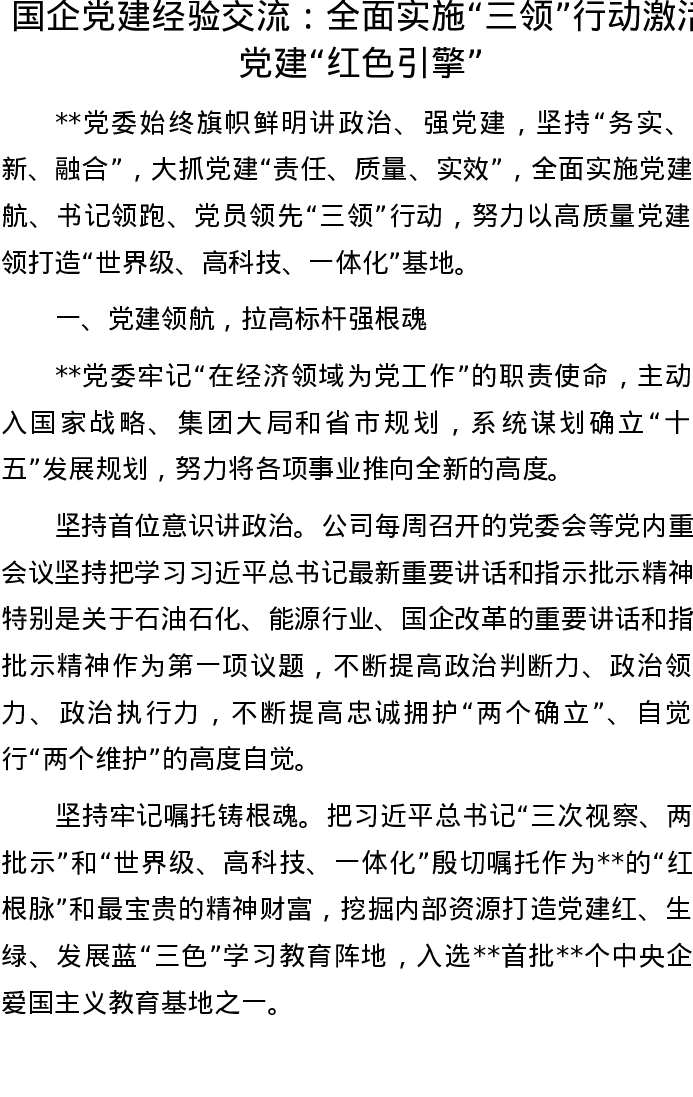 20220926国企党建经验交流:全面实施“三领”行动 激活党建“红色引擎”