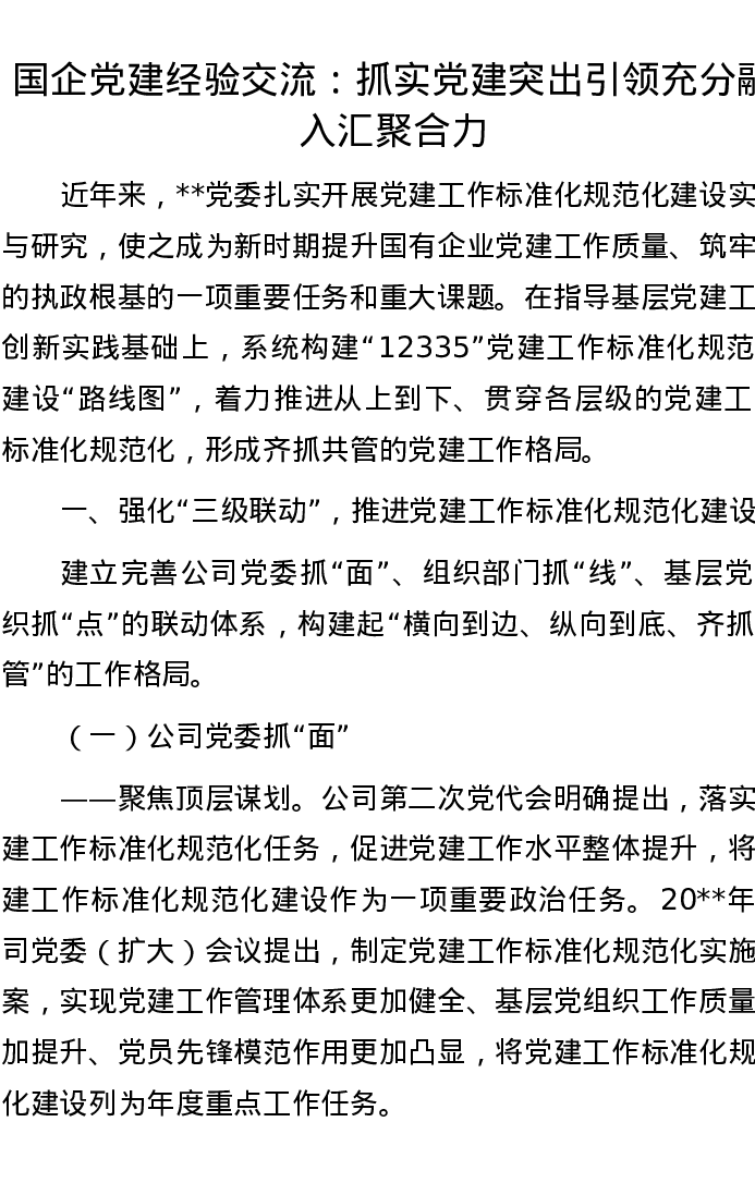 20220927国企党建经验交流:抓实党建突出引领 充分融入汇聚合力