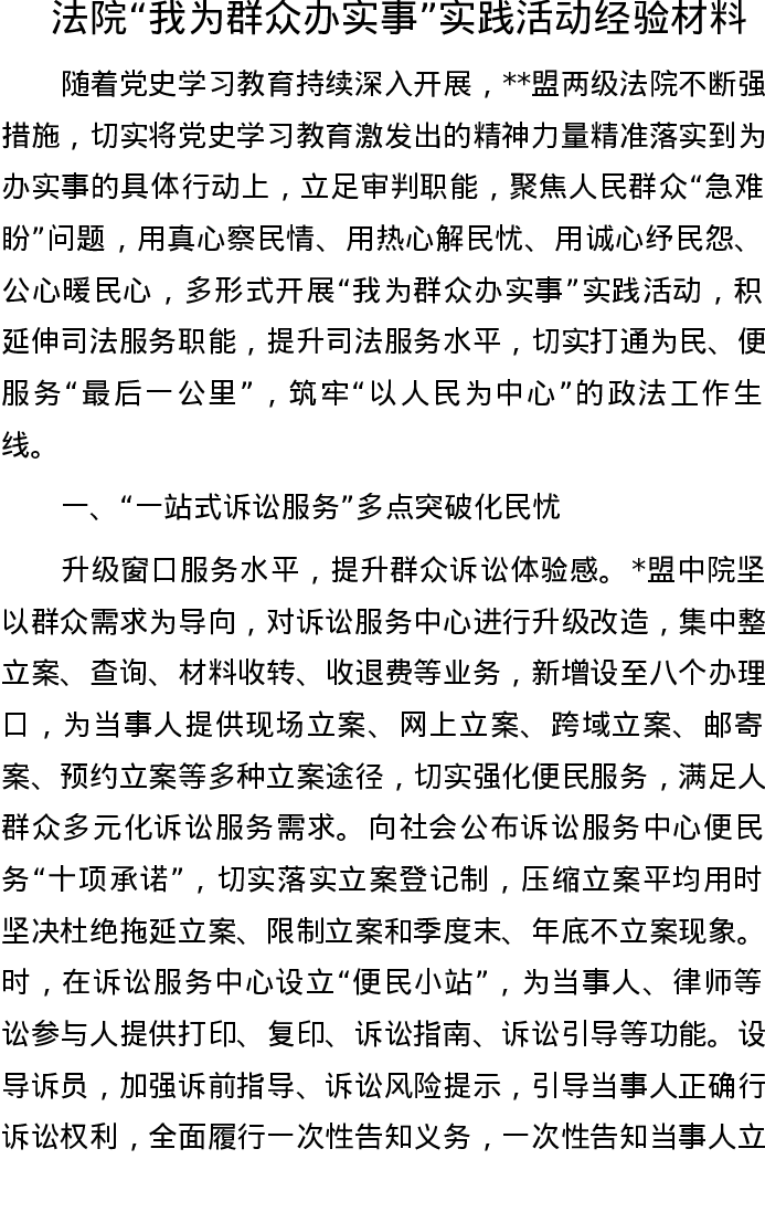 20221002法院“我为群众办实事”实践活动经验材料