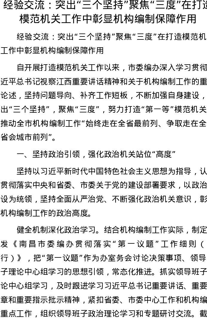 20221002经验交流:突出“三个坚持” 聚焦“三度” 在打造模范机关工作中彰显机构编制保障作用