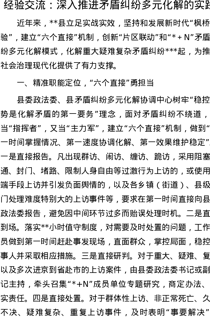 20221006经验交流:深入推进矛盾纠纷多元化解的实践