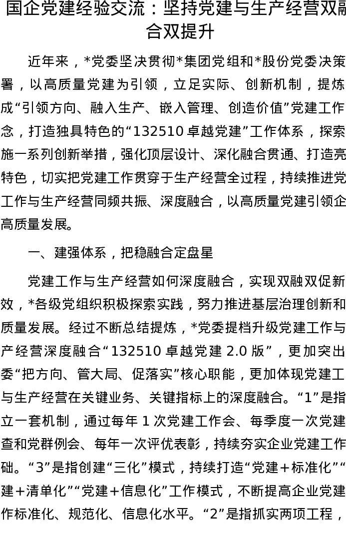 20221008国企党建经验交流:坚持党建与生产经营双融合双提升