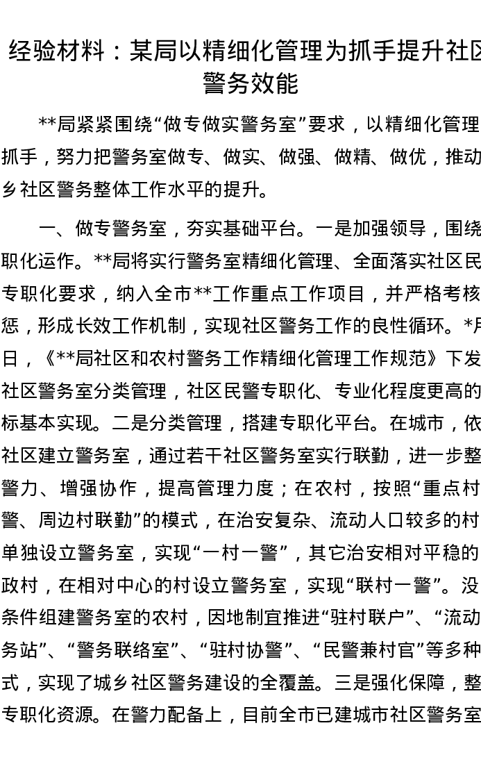 20221011经验材料:某局以精细化管理为抓手提升社区警务效能