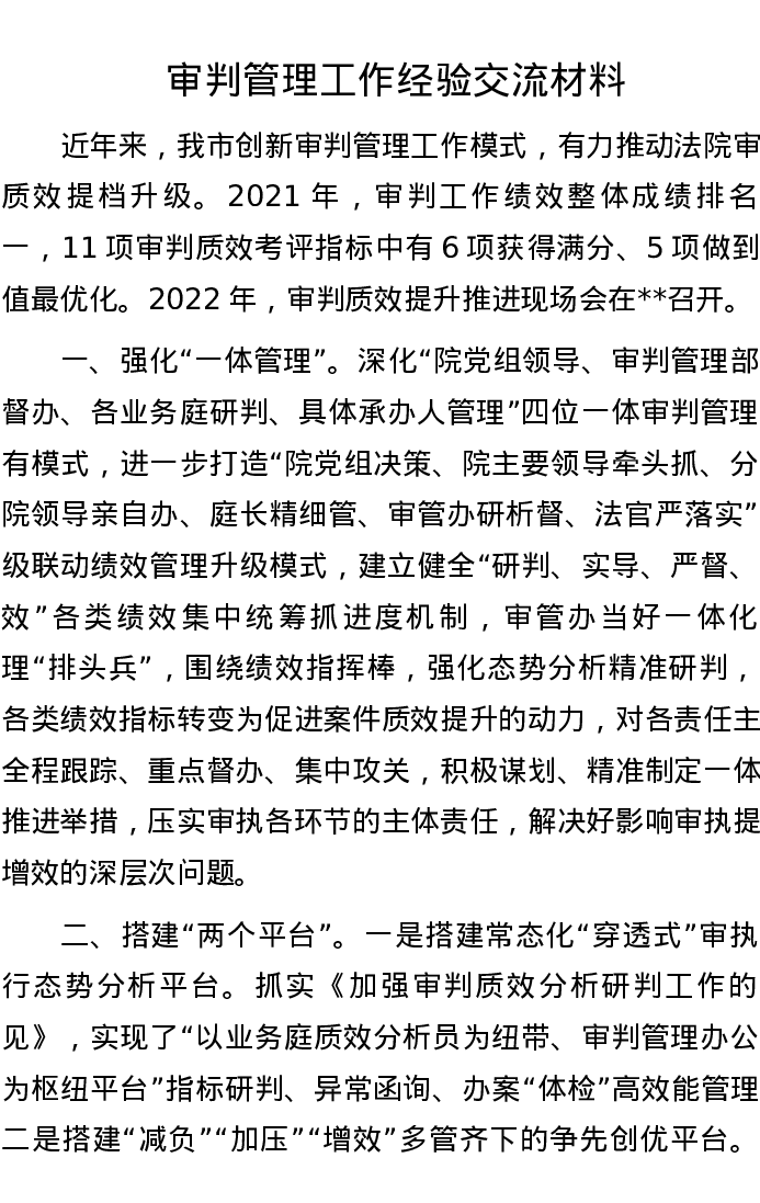 20221014审判管理工作经验交流材料