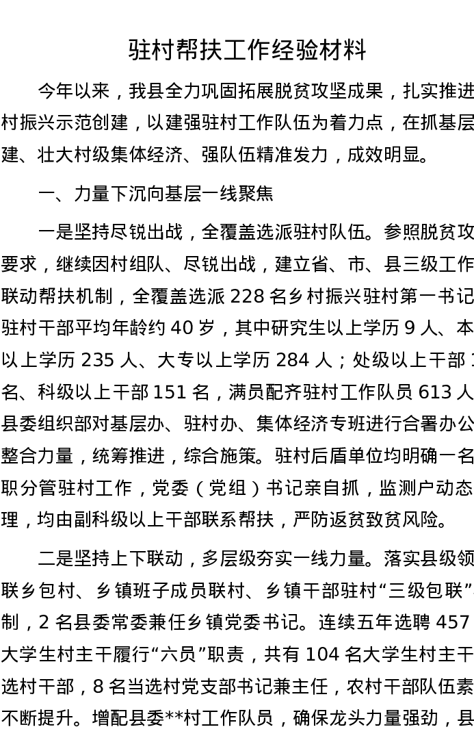 20221014驻村帮扶工作经验材料