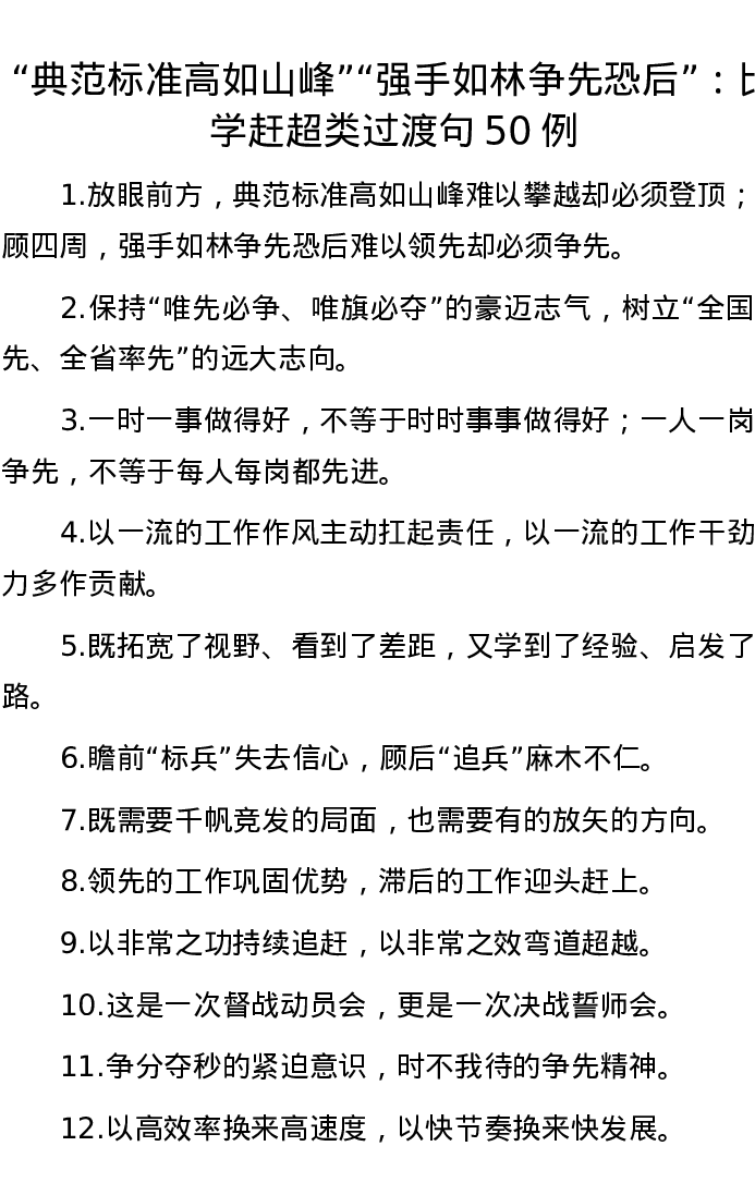 20220926【写作素材】“典范标准高如山峰”“强手如林争先恐后”:比学赶超类过渡句50例