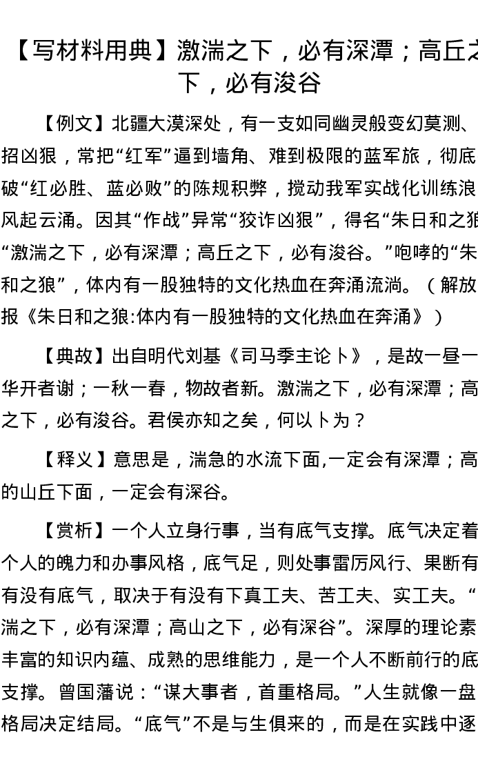 20220926【写作素材】【写材料用典】激湍之下,必有深潭;高丘之下,必有浚谷