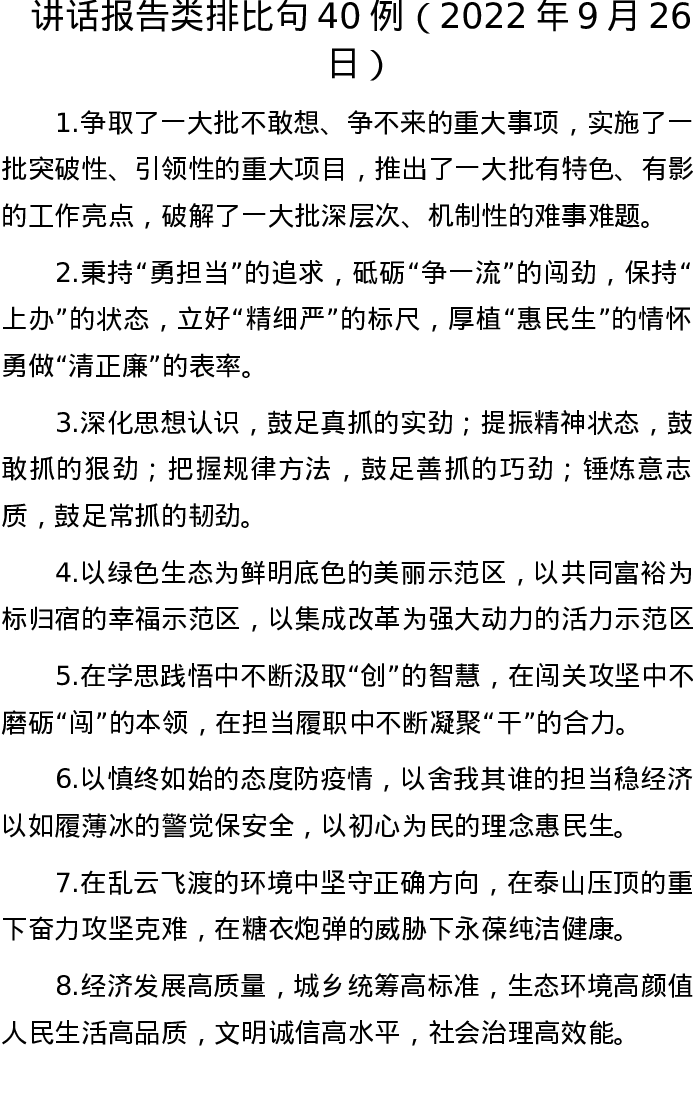 20220926【写作素材】讲话报告类排比句40例(2022年9月26日)