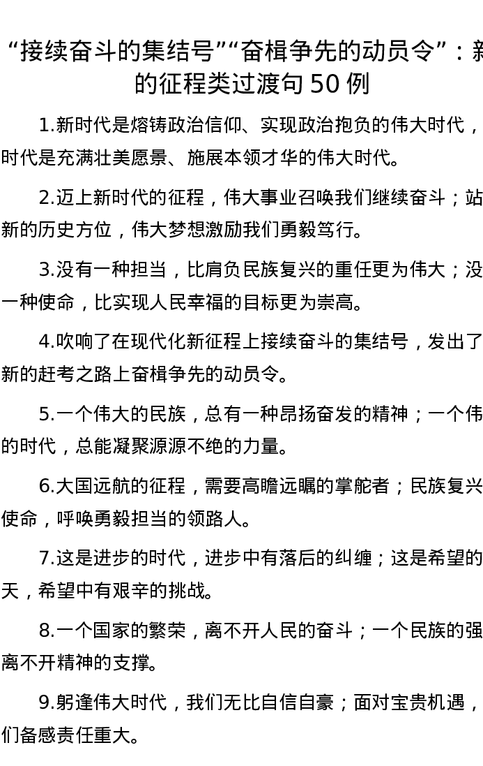 20220927【写作素材】“接续奋斗的集结号”“奋楫争先的动员令”:新的征程类过渡句50例