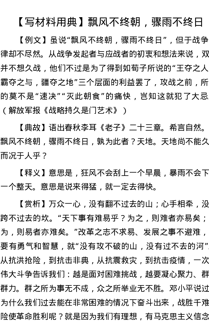 20220927【写作素材】【写材料用典】飘风不终朝,骤雨不终日