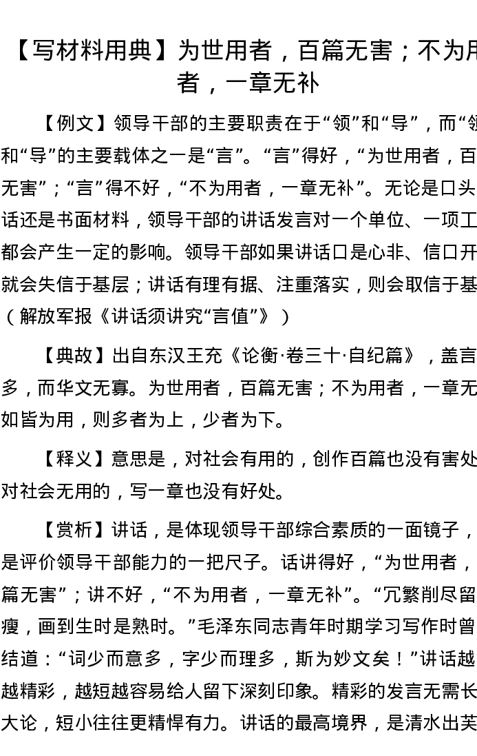20220928【写作素材】【写材料用典】为世用者,百篇无害;不为用者,一章无补