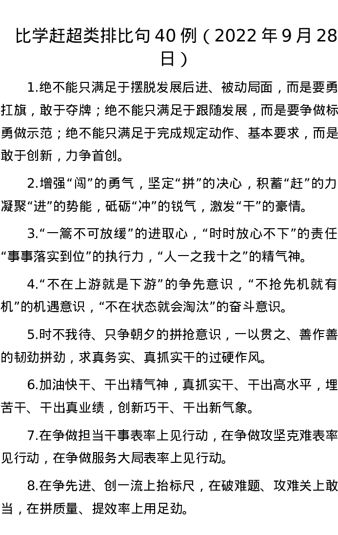 20220928【写作素材】比学赶超类排比句40例(2022年9月28日)